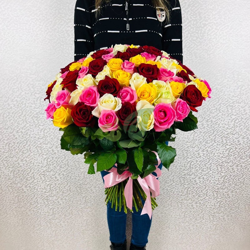 Яркий, эффектный, пышущий жизненной энергией и страстью букет из разноцветных роз – это прекрасный подарок к любому событию! А Ваша возлюбленная будет в восторге получив такой букет в качестве признаний нежных и горячих чувств.