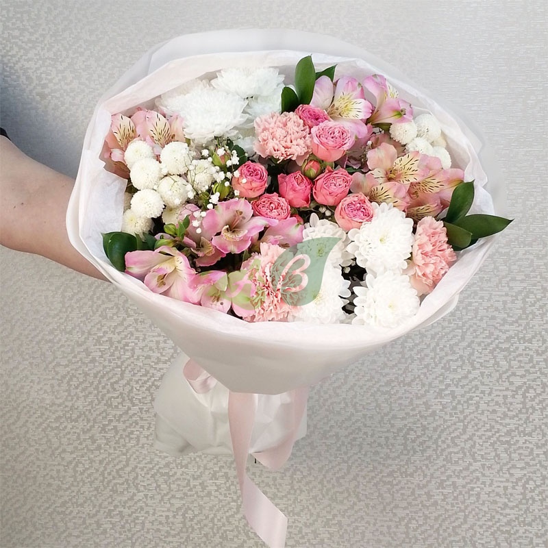 Нужны цветы в подарок – сборный букет «Мелодия рассвета» это красивый, нежный и естественный букет из кустовы роз, хризантем и альстромерий, который можно дарить по любому поводу.