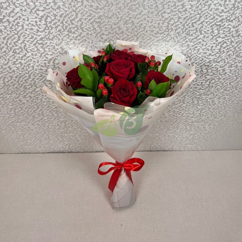 У букета цветов «Зимний аромат» действительно есть особое и прекрасное зимнее настроение. Сочетание красной розы и гиперикума, который похож на маленькие зимние ягодки рябины, как будто бы возвращают нас в теплое и домашнее Рождество. Но это вовсе не значит, что этот букет можно заказывать только зимой, он в любое время года будет радовать и удивлять.